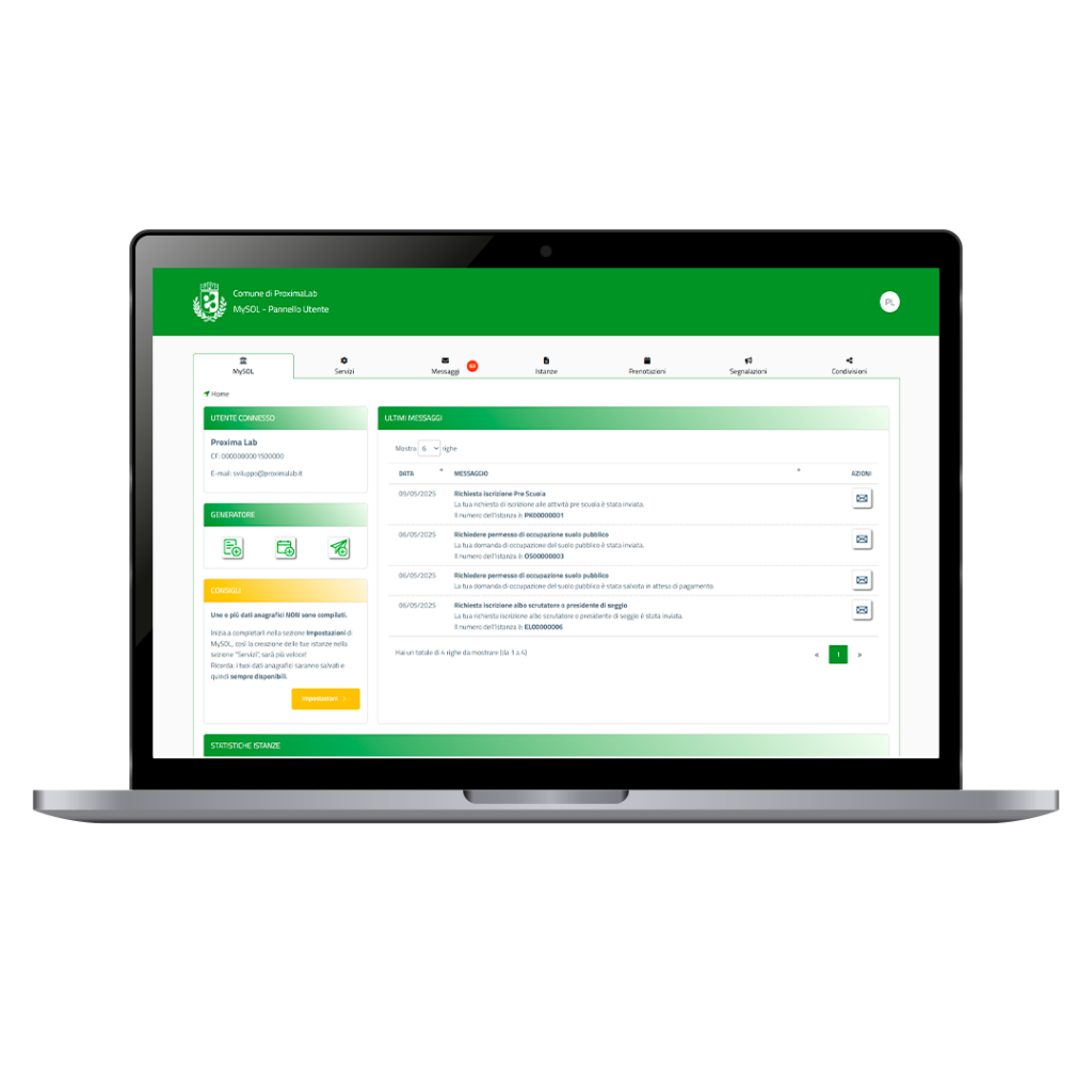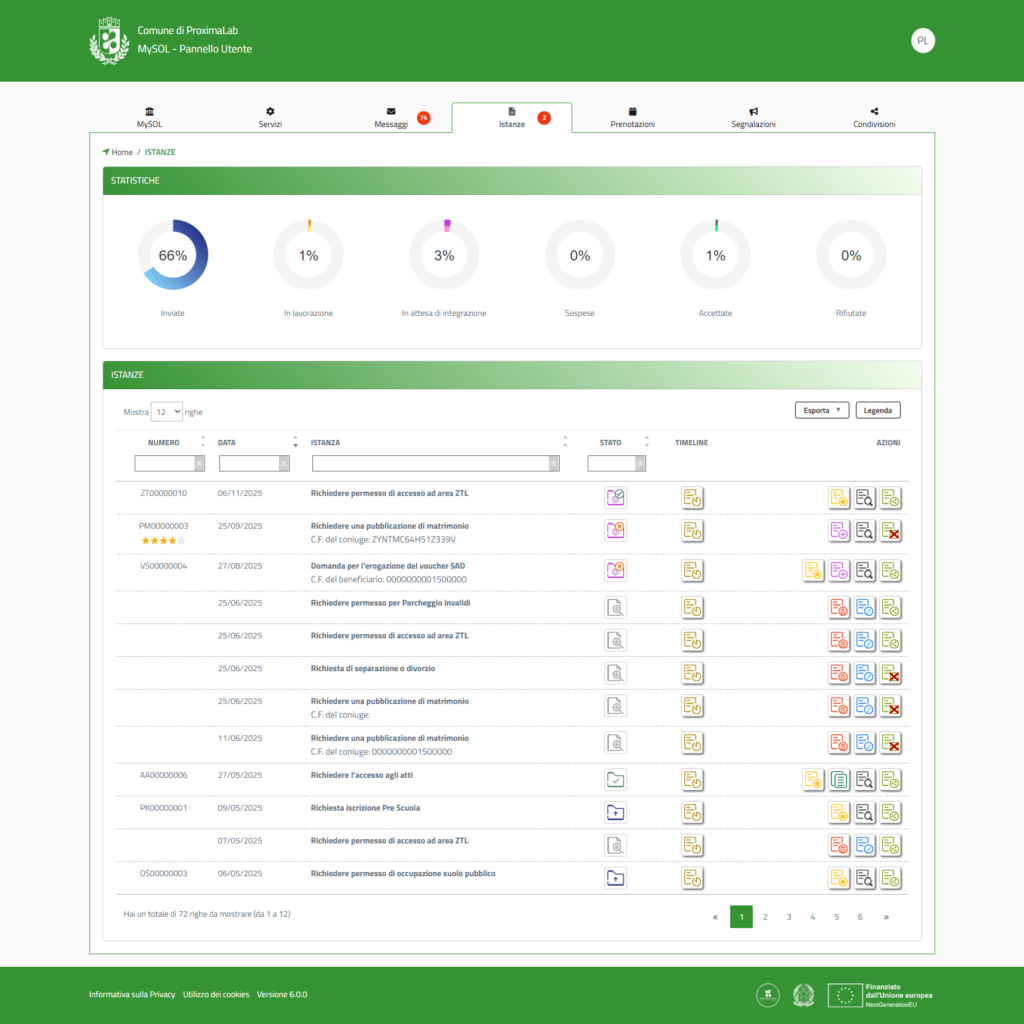 Il servizio consente di consultare e gestire facilmente le istanze digitali, rendendo più semplice l’invio, il tracciamento e l’accesso alle richieste online.
