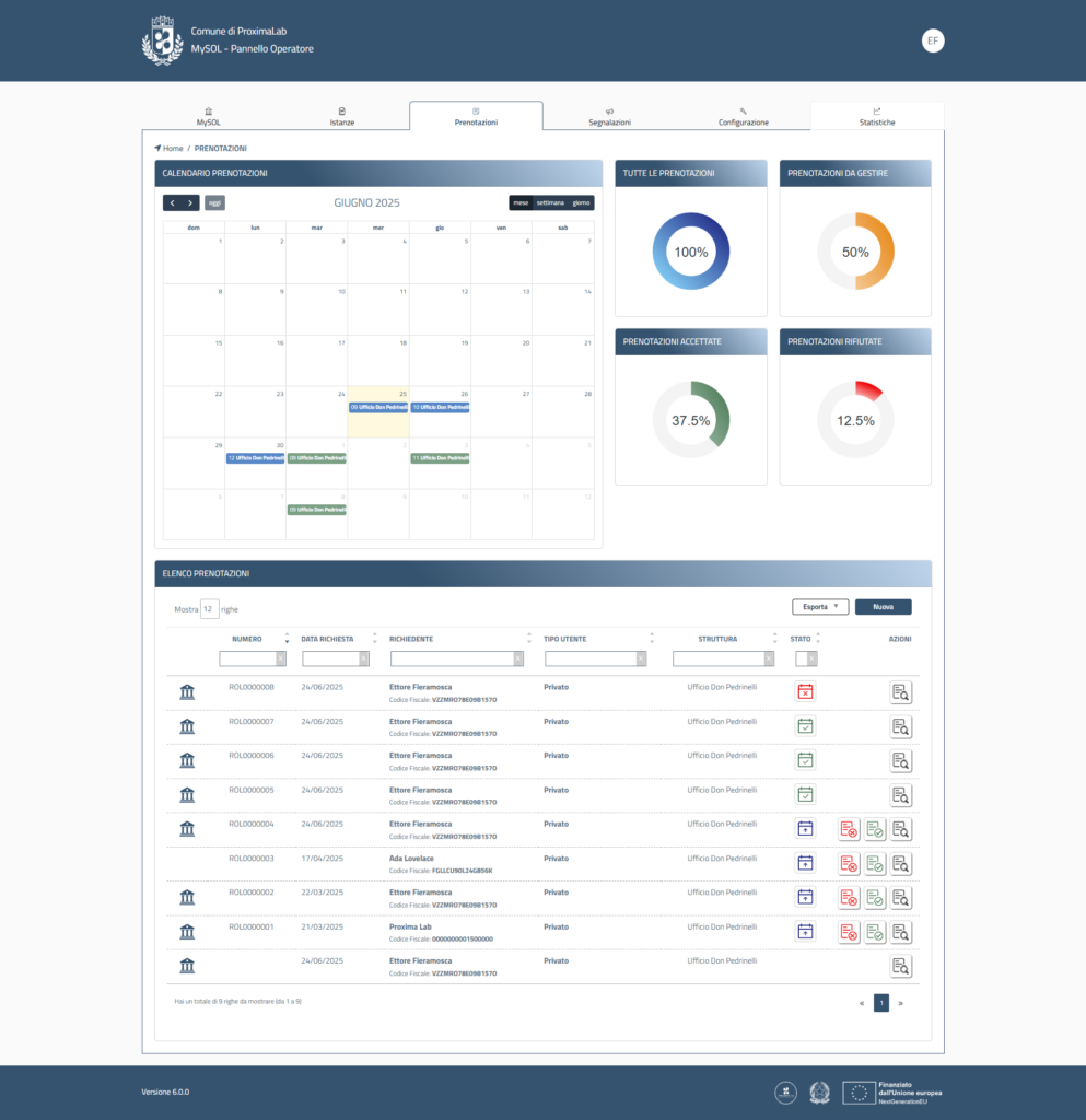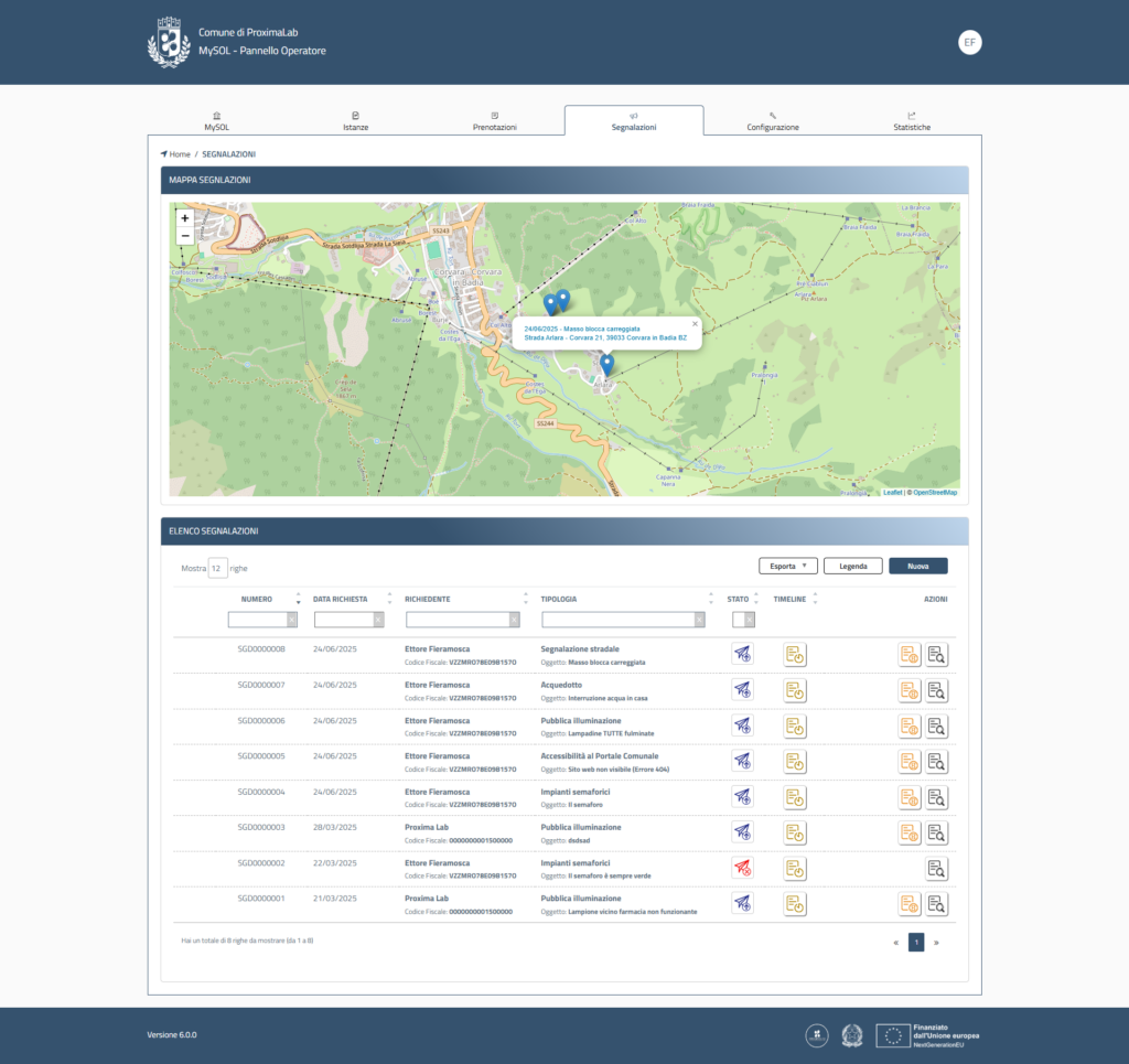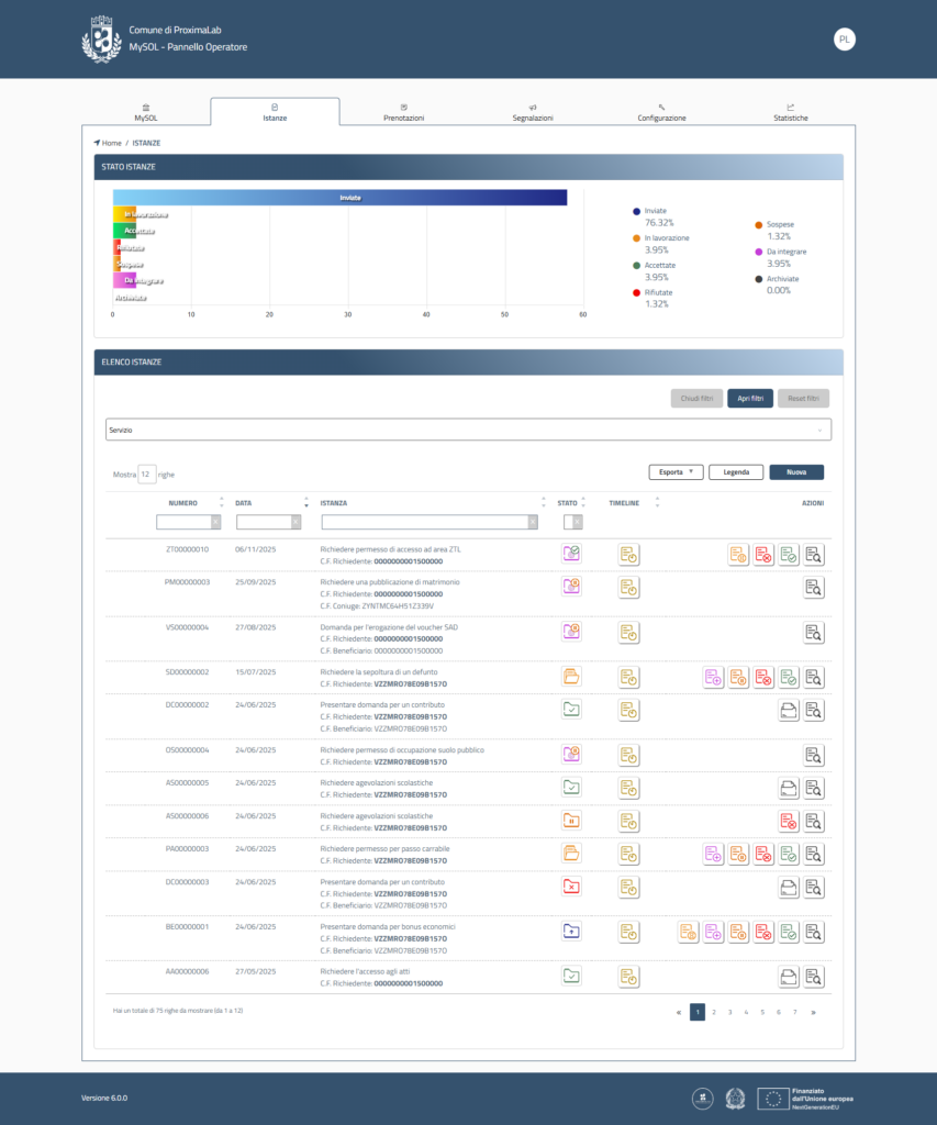 Il Pannello Operatore permette di gestire e tracciare l’intero iter, garantendo efficienza e trasparenza.