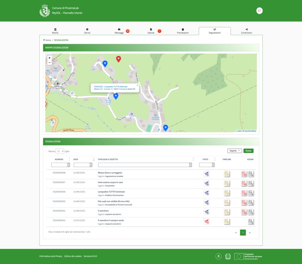 Il servizio consente di inviare e monitorare segnalazioni online, garantendo tracciamento semplice e gestione rapida dei problemi.