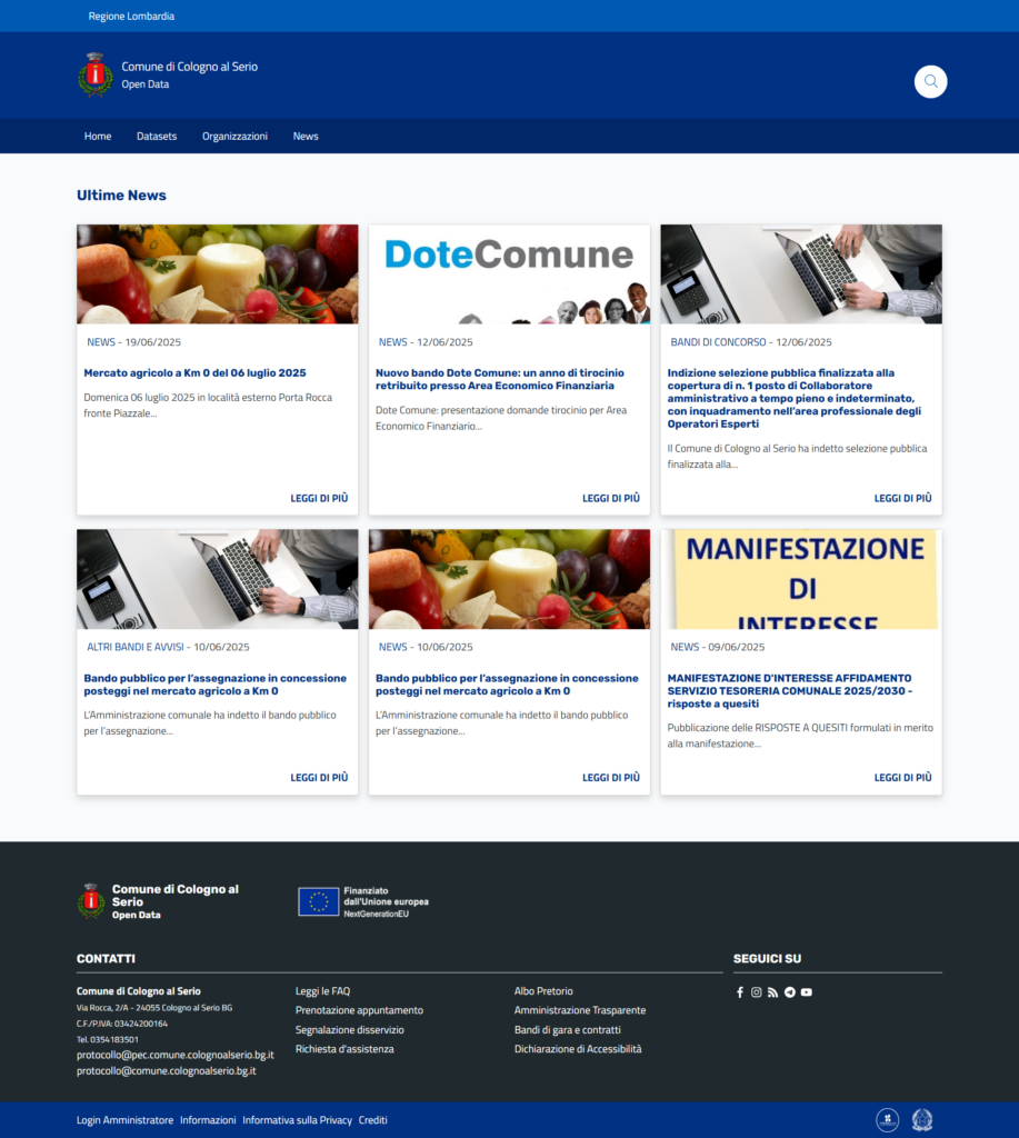 Il portale include anche un connettore sviluppato per gestire l’interconnessione con il portale comunale, facilitando la configurazione dei dataset e l’aggiornamento automatico dei dati.